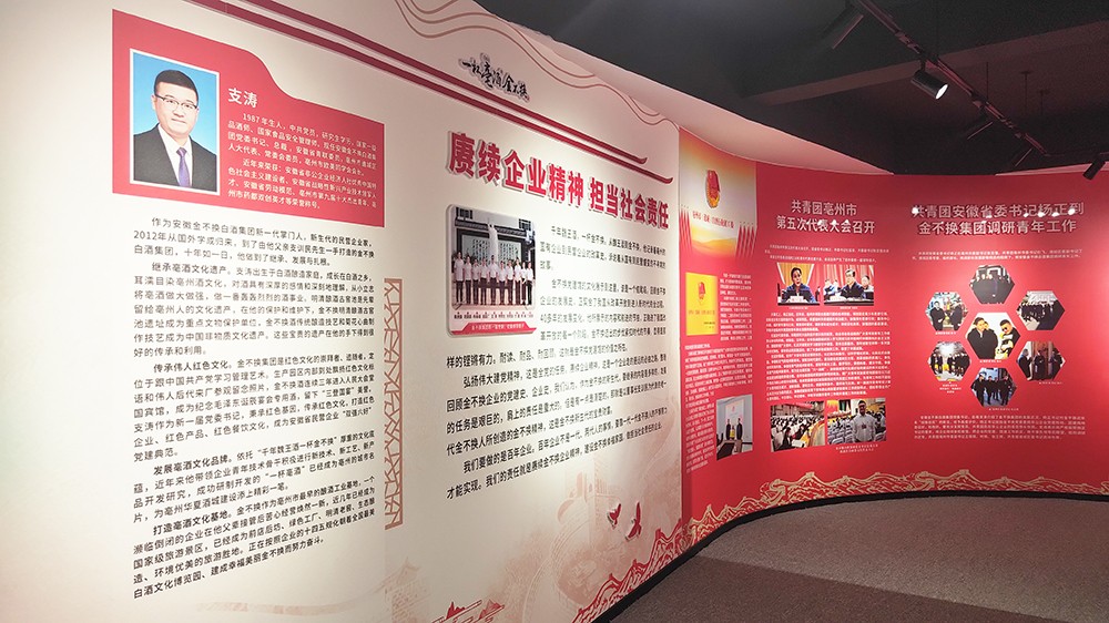 金不換黨建館的文化建設(shè)展示的內(nèi)容,突出了黨建引領(lǐng),回顧了金不換企業(yè)黨委帶領(lǐng)金不換白酒集團不斷發(fā)展壯大的歷史。金不換企業(yè)發(fā)展史正契合了我國從改革開放到進入新時代的全過程。40多年的發(fā)展變化,她所展示的內(nèi)容和前進的節(jié)拍,正融進了我國改革開放的每一個階段。金不換邁出的步伐緊扣時代的節(jié)奏,顯得是那樣的鏗鏘有力。耐讀、耐品、耐回顧。這就是金不換黨建館的價值之所在。